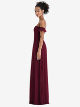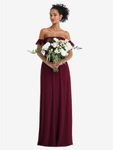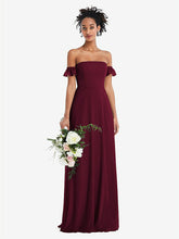【NEW】【STYLE: TH046】オフショルダー フリル カフ 袖 シフォン マキシ ドレス【COLOR: Cabernet】【SIZE: 00-30W】