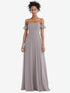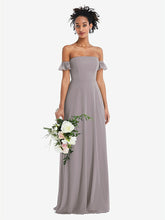 【NEW】【STYLE: TH046】オフショルダー フリル カフ 袖 シフォン マキシ ドレス【COLOR: Cashmere Gray】【SIZE: 00-30W】