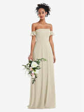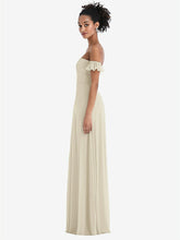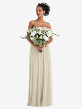 【NEW】【STYLE: TH046】オフショルダー フリル カフ 袖 シフォン マキシ ドレス【COLOR: Champagne】【SIZE: 00-30W】