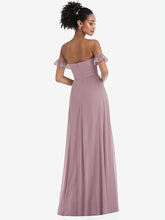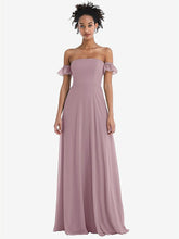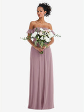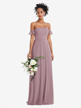 【NEW】【STYLE: TH046】オフショルダー フリル カフ 袖 シフォン マキシ ドレス【COLOR: Dusty Rose】【SIZE: 00-30W】