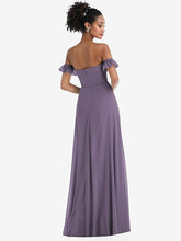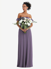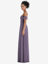 【NEW】【STYLE: TH046】オフショルダー フリル カフ 袖 シフォン マキシ ドレス【COLOR: Lavender】【SIZE: 00-30W】