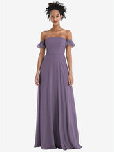 プリンセスにふさわしい女性の流れにより、この肩から外れたマキシドレスは、フォーマルなソワードの約束に最適です。 Lux Chiffonのロマンチックな魅力は、きれいなフラッターカフの袖と改造されたサークルスカートを、上品で優雅で、果てしなくエレガントに見せます。