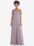 【NEW】【STYLE: TH046】オフショルダー フリル カフ 袖 シフォン マキシ ドレス【COLOR: Lilac Dusk】【SIZE: 00-30W】