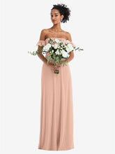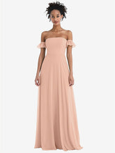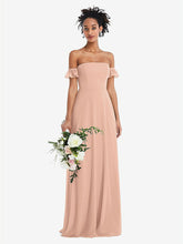 【NEW】【STYLE: TH046】オフショルダー フリル カフ 袖 シフォン マキシ ドレス【COLOR: Pale Peach】【SIZE: 00-30W】