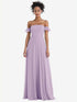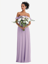 【NEW】【STYLE: TH046】オフショルダー フリル カフ 袖 シフォン マキシ ドレス【COLOR: Pale Purple】【SIZE: 00-30W】