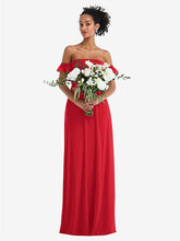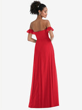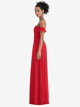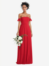 【NEW】【STYLE: TH046】オフショルダー フリル カフ 袖 シフォン マキシ ドレス【COLOR: Parisian Red】【SIZE: 00-30W】