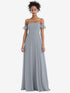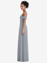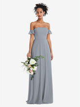 【NEW】【STYLE: TH046】オフショルダー フリル カフ 袖 シフォン マキシ ドレス【COLOR: Platinum】【SIZE: 00-30W】