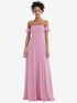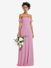 【NEW】【STYLE: TH046】オフショルダー フリル カフ 袖 シフォン マキシ ドレス【COLOR: Powder Pink】【SIZE: 00-30W】