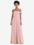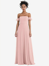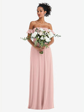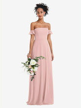 【NEW】【STYLE: TH046】オフショルダー フリル カフ 袖 シフォン マキシ ドレス【COLOR: Rose - PANTONE Rose Quartz】【SIZE: 00-30W】