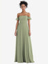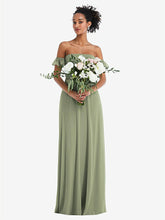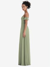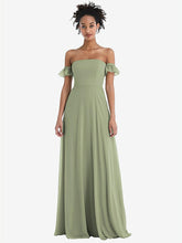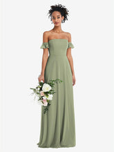 【NEW】【STYLE: TH046】オフショルダー フリル カフ 袖 シフォン マキシ ドレス【COLOR: Sage】【SIZE: 00-30W】