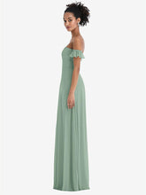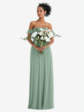 【NEW】【STYLE: TH046】オフショルダー フリル カフ 袖 シフォン マキシ ドレス【COLOR: Seagrass】【SIZE: 00-30W】
