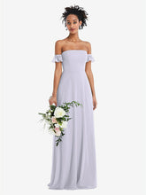 プリンセスにふさわしい女性の流れにより、この肩から外れたマキシドレスは、フォーマルなソワードの約束に最適です。 Lux Chiffonのロマンチックな魅力は、きれいなフラッターカフの袖と改造されたサークルスカートを、上品で優雅で、果てしなくエレガントに見せます。