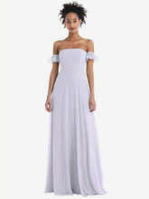【NEW】【STYLE: TH046】オフショルダー フリル カフ 袖 シフォン マキシ ドレス【COLOR: Silver Dove】【SIZE: 00-30W】