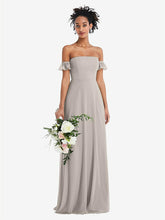 プリンセスにふさわしい女性の流れにより、この肩から外れたマキシドレスは、フォーマルなソワードの約束に最適です。 Lux Chiffonのロマンチックな魅力は、きれいなフラッターカフの袖と改造されたサークルスカートを、上品で優雅で、果てしなくエレガントに見せます。