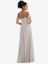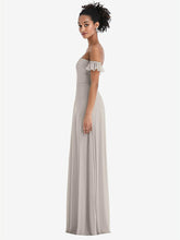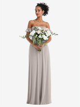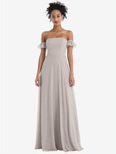 【NEW】【STYLE: TH046】オフショルダー フリル カフ 袖 シフォン マキシ ドレス【COLOR: Taupe】【SIZE: 00-30W】