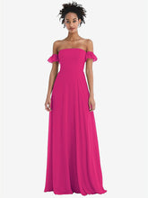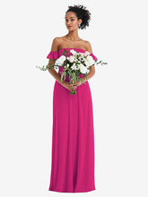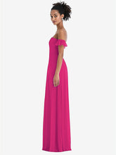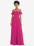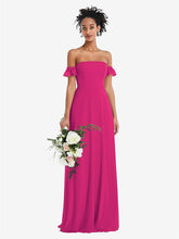【NEW】【STYLE: TH046】オフショルダー フリル カフ 袖 シフォン マキシ ドレス【COLOR: Think Pink】【SIZE: 00-30W】