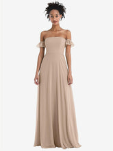 【NEW】【STYLE: TH046】オフショルダー フリル カフ 袖 シフォン マキシ ドレス【COLOR: Topaz】【SIZE: 00-30W】