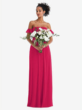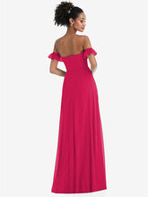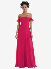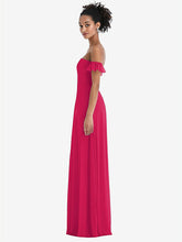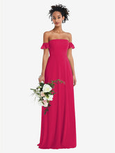 【NEW】【STYLE: TH046】オフショルダー フリル カフ 袖 シフォン マキシ ドレス【COLOR: Vivid Pink】【SIZE: 00-30W】