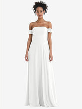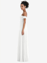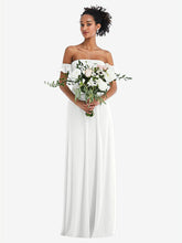【NEW】【STYLE: TH046】オフショルダー フリル カフ 袖 シフォン マキシ ドレス【COLOR: White】【SIZE: 00-30W】