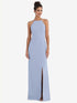 【NEW】【STYLE: TH047】オープンバック ハイネック ホルター トランペット ガウン【COLOR: Sky Blue】【SIZE: 00-30W】