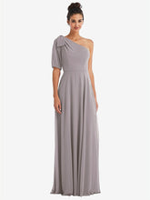 【NEW】【STYLE: TH048】弓 ワンショルダー フラウンス 袖 マキシ ドレス【COLOR: Cashmere Gray】【SIZE: 00-30W】