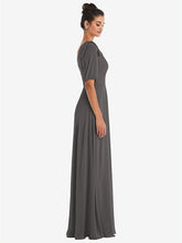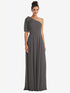 【NEW】【STYLE: TH048】弓 ワンショルダー フラウンス 袖 マキシ ドレス【COLOR: Caviar Gray】【SIZE: 00-30W】