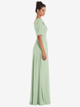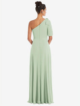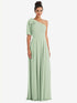【NEW】【STYLE: TH048】弓 ワンショルダー フラウンス 袖 マキシ ドレス【COLOR: Celadon】【SIZE: 00-30W】