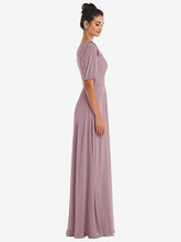【NEW】【STYLE: TH048】弓 ワンショルダー フラウンス 袖 マキシ ドレス【COLOR: Dusty Rose】【SIZE: 00-30W】