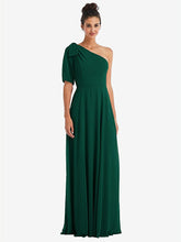 【NEW】【STYLE: TH048】弓 ワンショルダー フラウンス 袖 マキシ ドレス【COLOR: Hunter Green】【SIZE: 00-30W】