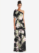 【NEW】【STYLE: TH048】弓 ワンショルダー フラウンス 袖 マキシ ドレス【COLOR: Noir Garden】【SIZE: 00-30W】