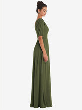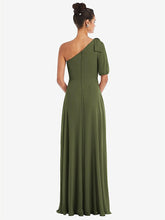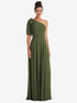 【NEW】【STYLE: TH048】弓 ワンショルダー フラウンス 袖 マキシ ドレス【COLOR: Olive Green】【SIZE: 00-30W】