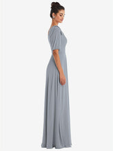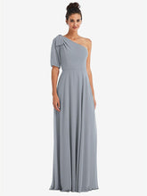 【NEW】【STYLE: TH048】弓 ワンショルダー フラウンス 袖 マキシ ドレス【COLOR: Platinum】【SIZE: 00-30W】