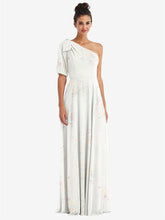 【NEW】【STYLE: TH048】弓 ワンショルダー フラウンス 袖 マキシ ドレス【COLOR: Spring Fling】【SIZE: 00-30W】