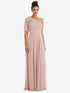 【NEW】【STYLE: TH048】弓 ワンショルダー フラウンス 袖 マキシ ドレス【COLOR: Toasted Sugar】【SIZE: 00-30W】