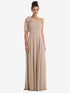 【NEW】【STYLE: TH048】弓 ワンショルダー フラウンス 袖 マキシ ドレス【COLOR: Topaz】【SIZE: 00-30W】
