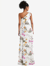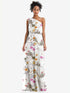 【NEW】【STYLE: TH052】ワンショルダー 弓 ブルーソン ボディス マキシ ドレス【COLOR: Butterfly Botanica Ivory】【SIZE: 00-30W】