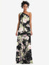 【NEW】【STYLE: TH052】ワンショルダー 弓 ブルーソン ボディス マキシ ドレス【COLOR: Noir Garden】【SIZE: 00-30W】