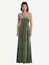 【NEW】【STYLE: TH059】ワンショルダー ドレープ ベルベット マキシ ドレス【COLOR: Sage】【SIZE: 00-30W】