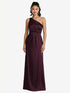 【NEW】【STYLE: TH063】ワンショルダー ドレープ サテン マキシ ドレス【COLOR: Bordeaux】【SIZE: 00-30W】