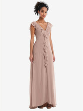 【NEW】【STYLE: TH064】Ruffle-Trimmed V-Back Chiffon Maxi ドレス【COLOR: Bliss】【SIZE: 00-30W】