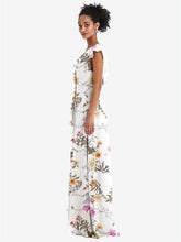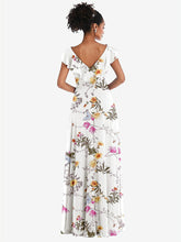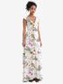【NEW】【STYLE: TH064】Ruffle-Trimmed V-Back Chiffon Maxi ドレス【COLOR: Butterfly Botanica Ivory】【SIZE: 00-30W】