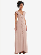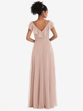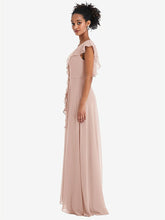 【NEW】【STYLE: TH064】Ruffle-Trimmed V-Back Chiffon Maxi ドレス【COLOR: Toasted Sugar】【SIZE: 00-30W】