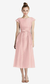 【NEW】【STYLE: TH067】キャップ スリーブ プリーツ スカート MIDI ドレス お辞儀【COLOR: Rose - PANTONE Rose Quartz】【SIZE: 00-30W】