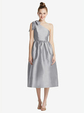よくプレイされた弓のディテールを備えたこの甘くて女性的なワンショルダーミディドレスは、春のように見えます。豪華なピュードゥーイで作られたフィギュアフレーターのデザインは、素敵なフルスカートで丸みを帯びています。