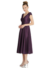 【NEW】【STYLE: TH091】キャップ スリーブ フェイク ラップ サテン MIDI ドレス ポケット付き【COLOR: Aubergine】【SIZE: 00-30W】