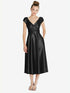 【NEW】【STYLE: TH091】キャップ スリーブ フェイク ラップ サテン MIDI ドレス ポケット付き【COLOR: Black】【SIZE: 00-30W】