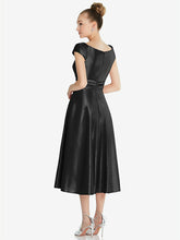 このマットサテンミディドレスの壮大な光沢の中から照らされるように見えます。生意気な余剰の胴着と軽薄なキャップスリーブを備えたこのドレスには、ダンスフロア対応のフルサークルスカートが備わっています。
