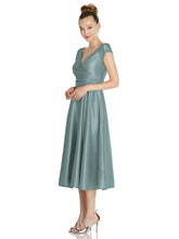 【NEW】【STYLE: TH091】キャップ スリーブ フェイク ラップ サテン MIDI ドレス ポケット付き【COLOR: Icelandic】【SIZE: 00-30W】