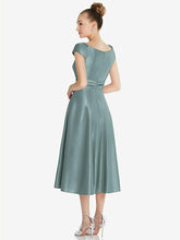 このマットサテンミディドレスの壮大な光沢の中から照らされるように見えます。生意気な余剰の胴着と軽薄なキャップスリーブを備えたこのドレスには、ダンスフロア対応のフルサークルスカートが備わっています。