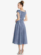 【NEW】【STYLE: TH091】キャップ スリーブ フェイク ラップ サテン MIDI ドレス ポケット付き【COLOR: Larkspur Blue】【SIZE: 00-30W】